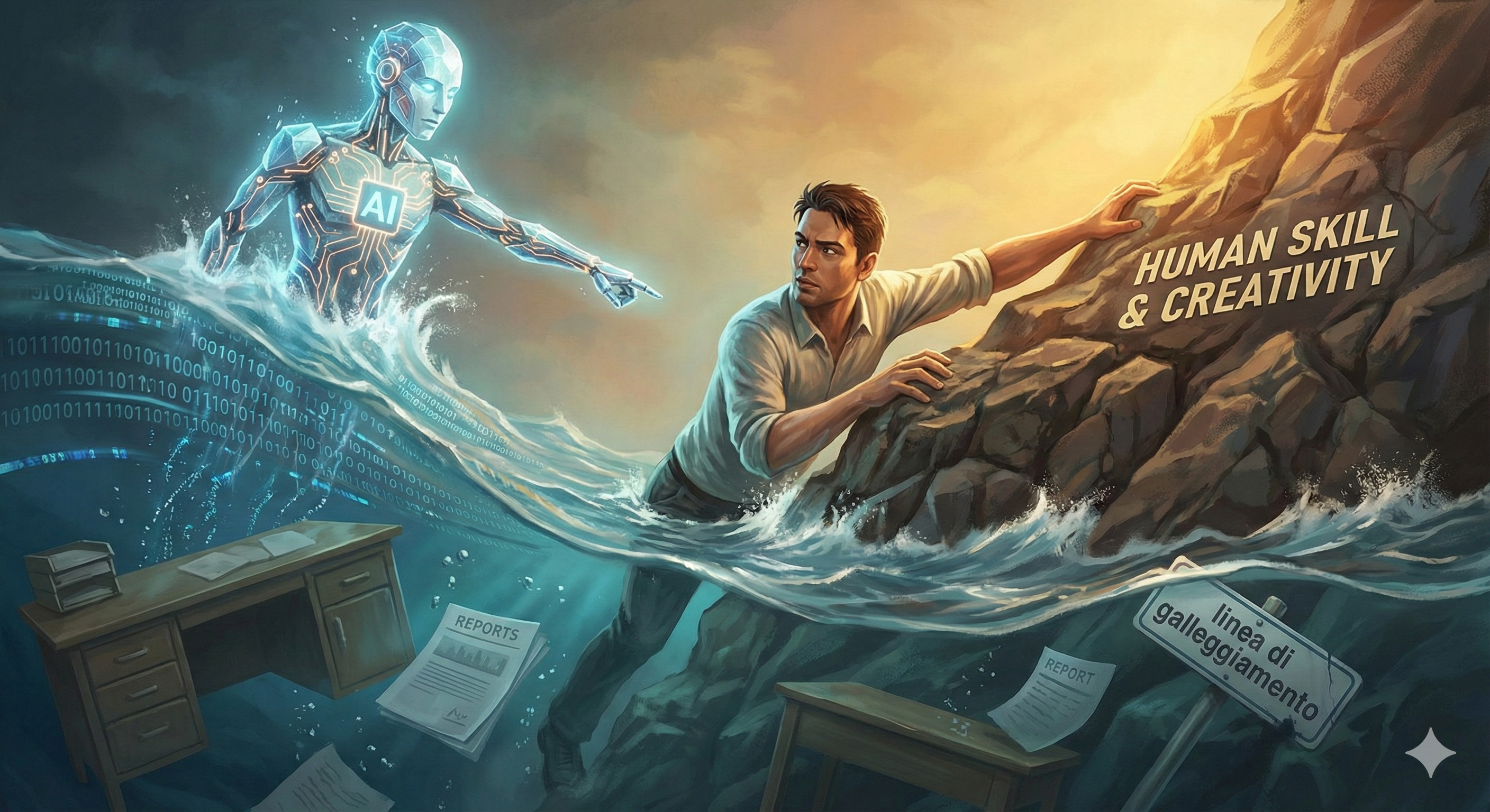 L'IA non ruba il lavoro in assoluto, ma spazza via la mediocrità. Scopri come la 'linea di galleggiamento' determina chi sopravvivrà e chi affonderà.